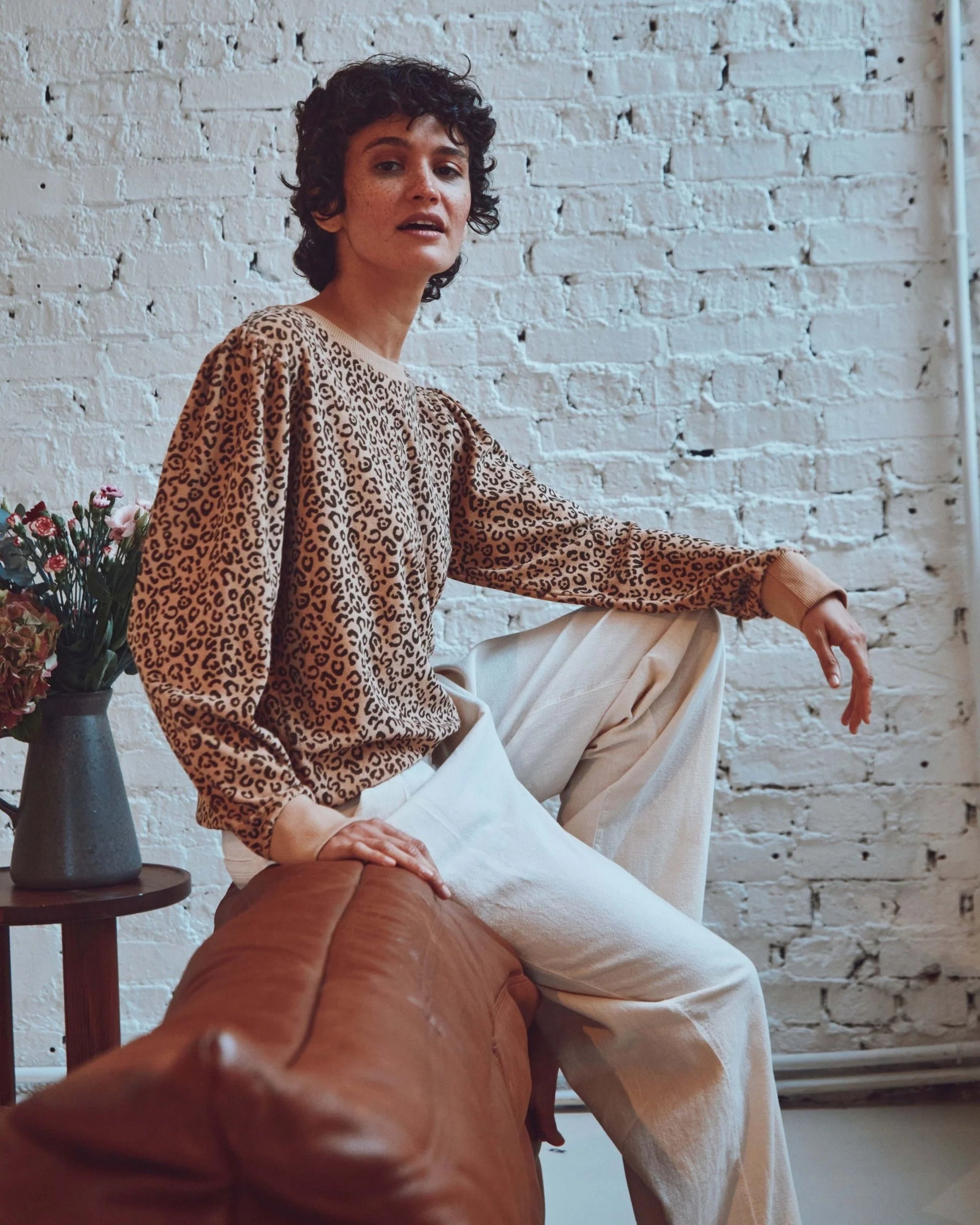 Beige and Black Leopard Terry Sweater Emile & Ida