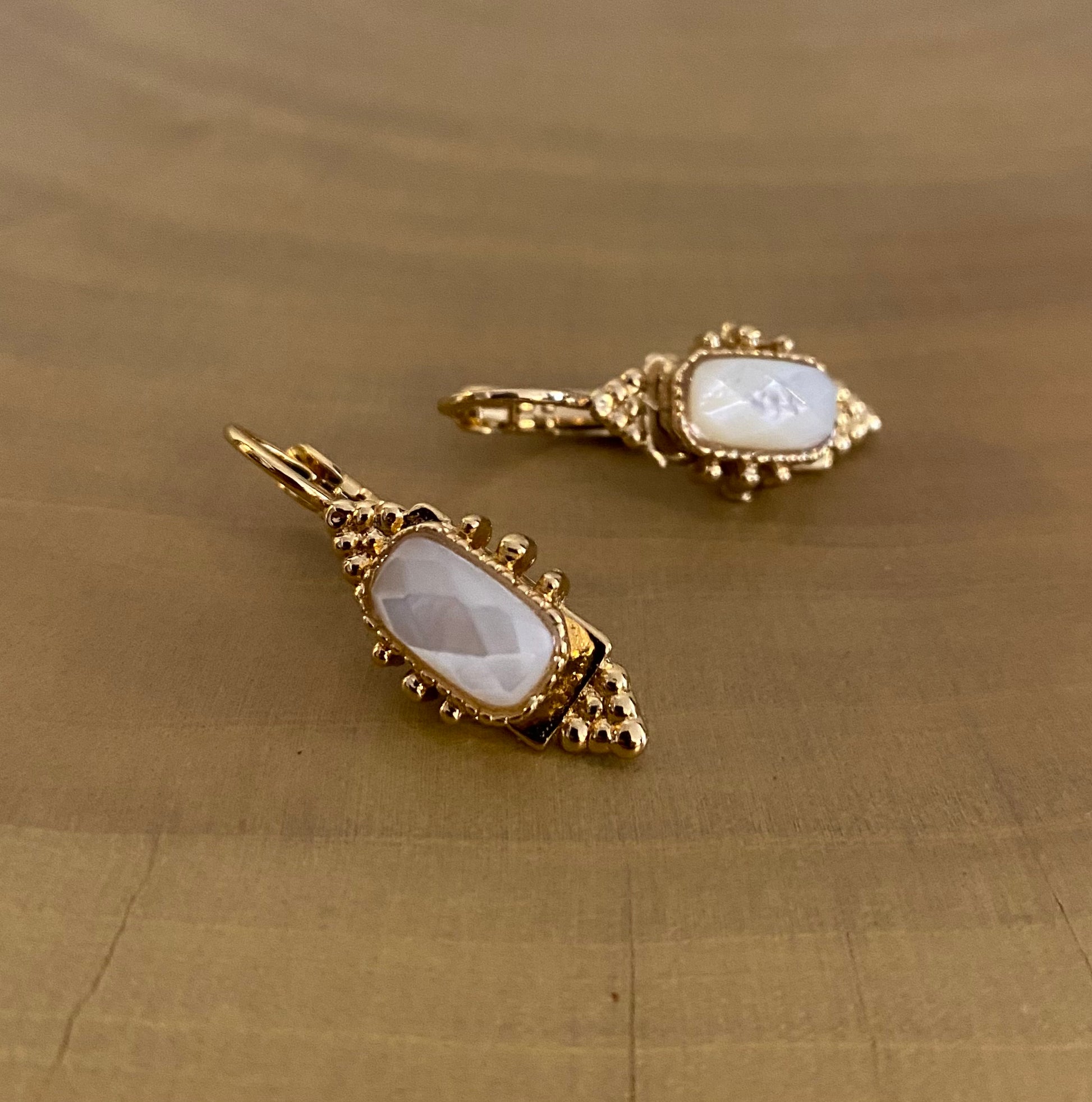 Gold plated earrings adorned with mother of pearl.