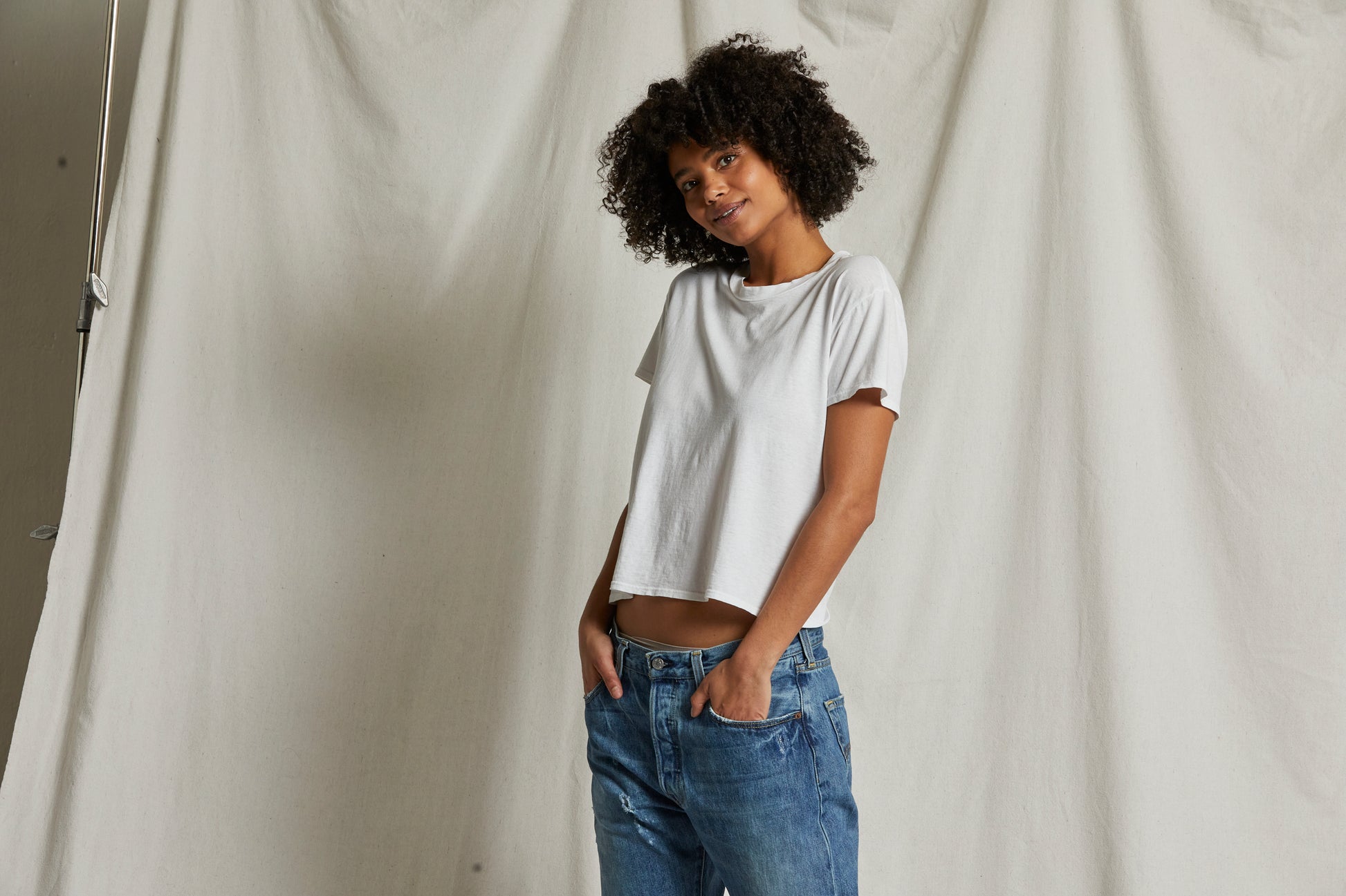 the ideal, relaxed-fit crew neck tee. subtly captivating, never overt. the must-have piece you'll want to don every day. matches perfectly with mid-rise denim. handpicked shades for any style. grab a couple; they're bound to be your all-time favorites.