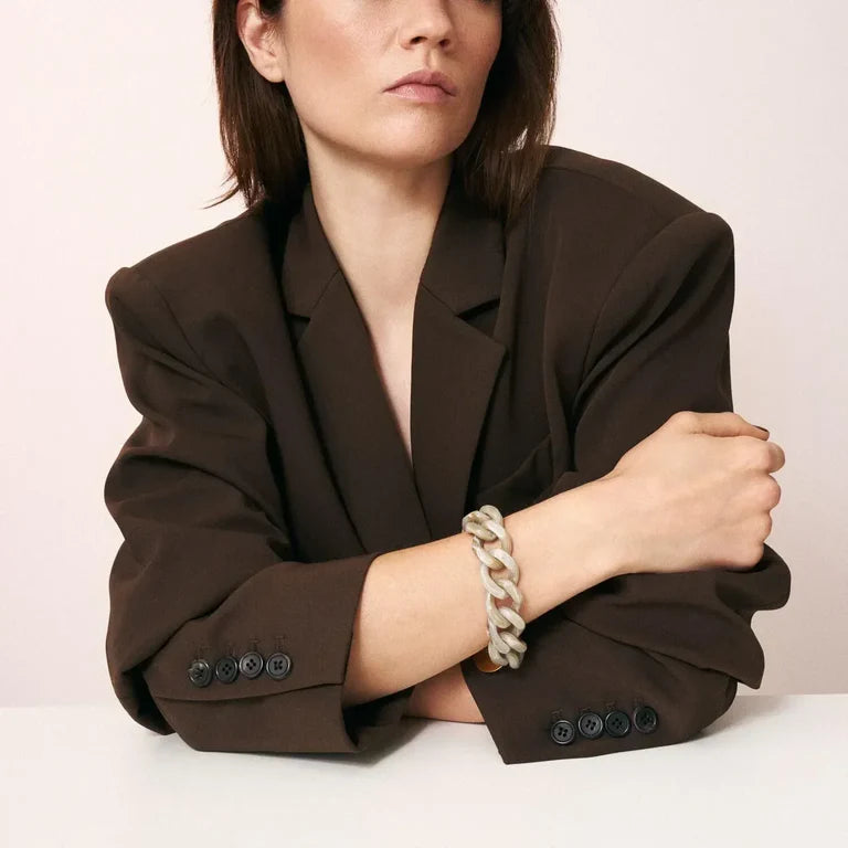 The bestseller that makes a statement. The feather-light acetate links nestle gently around every wrist and give you a comfortable feel. This bracelet not only attracts attention, but also reflects your personality in every outfit you wear.