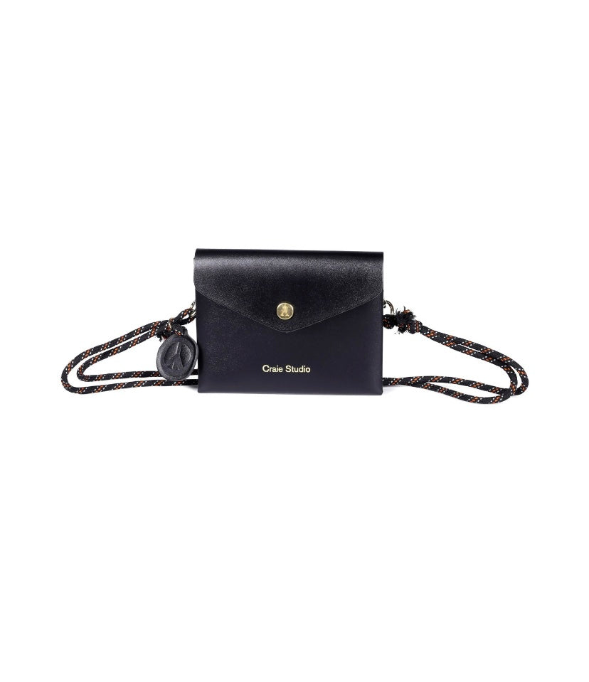 Ideal for nomadic use, it stands out with its sleek envelope style, perfect for keeping your coins, notes and cards safe. Thanks to its soft orange cord shoulder strap, you can wear it around your neck or slip it easily into your bag. Practical and lightweight, it adapts to all styles and everyday needs.
