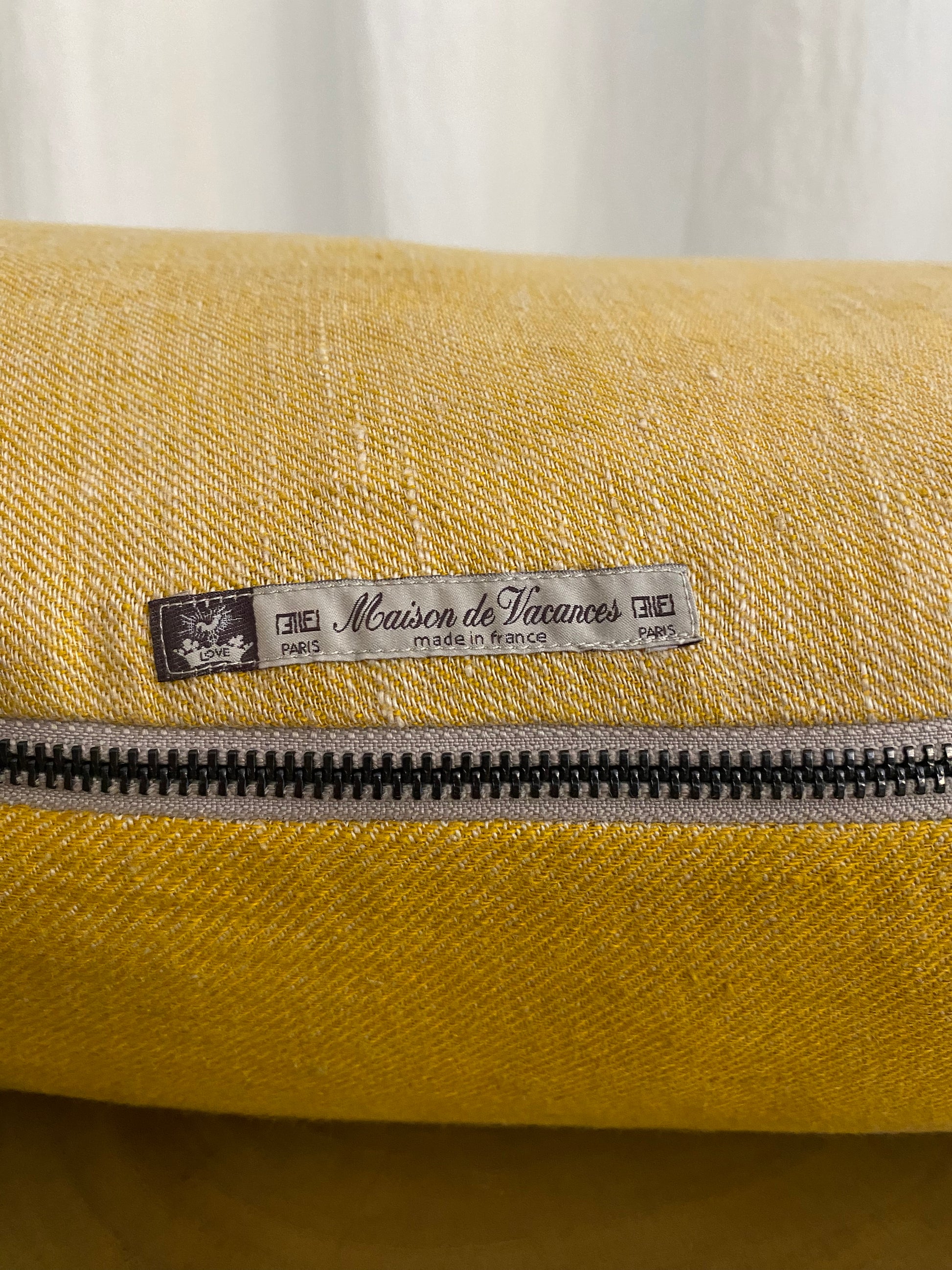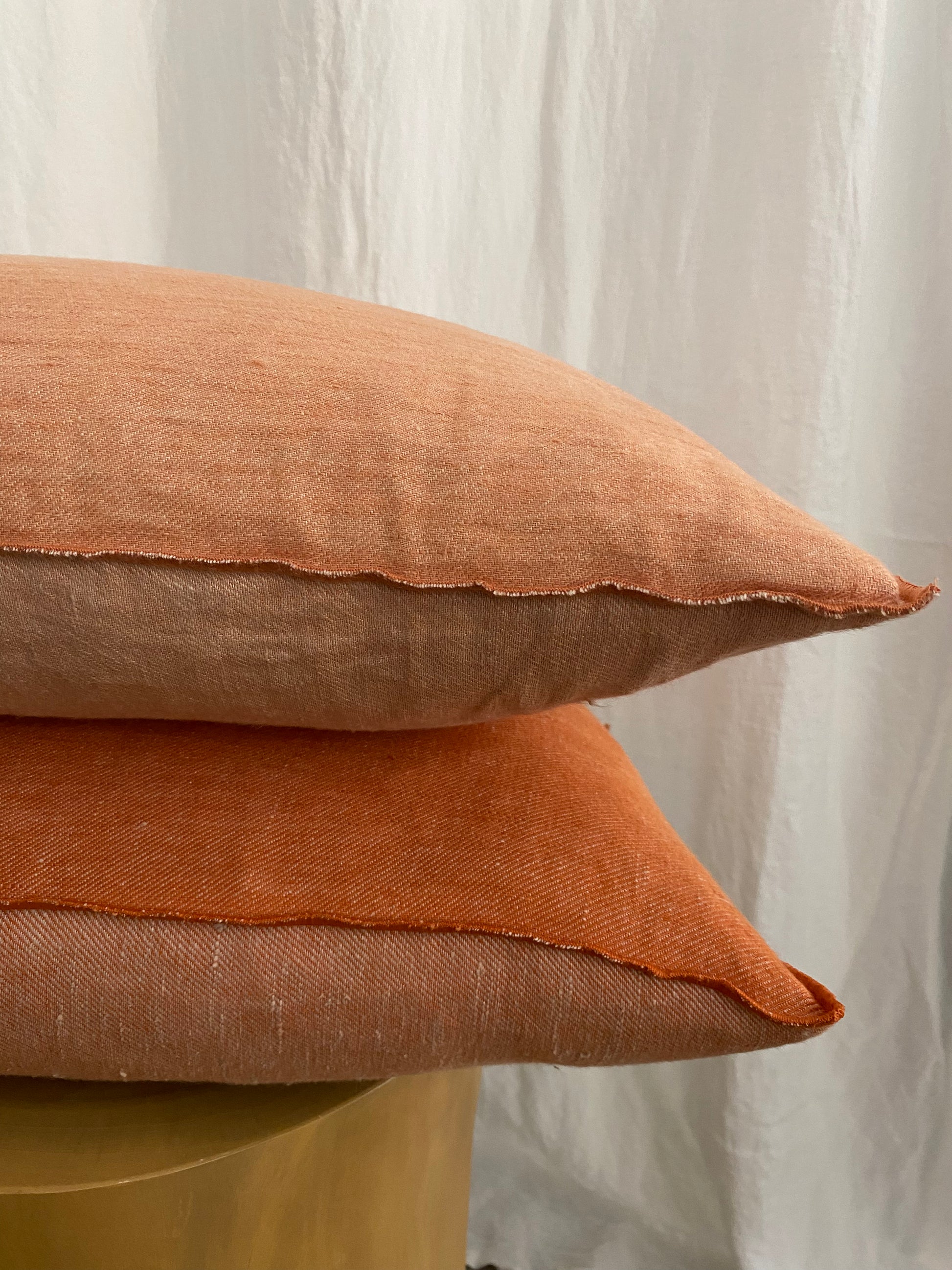 Fabric 100% Linen. One side of the cushion is lighter than the other, offering a nice contrast.