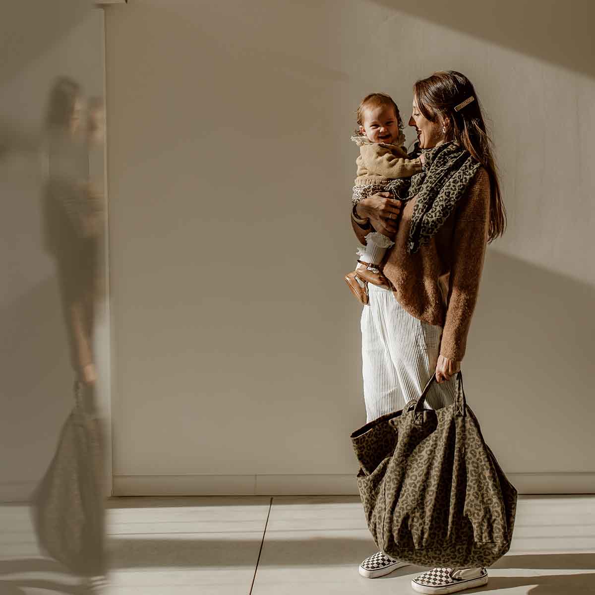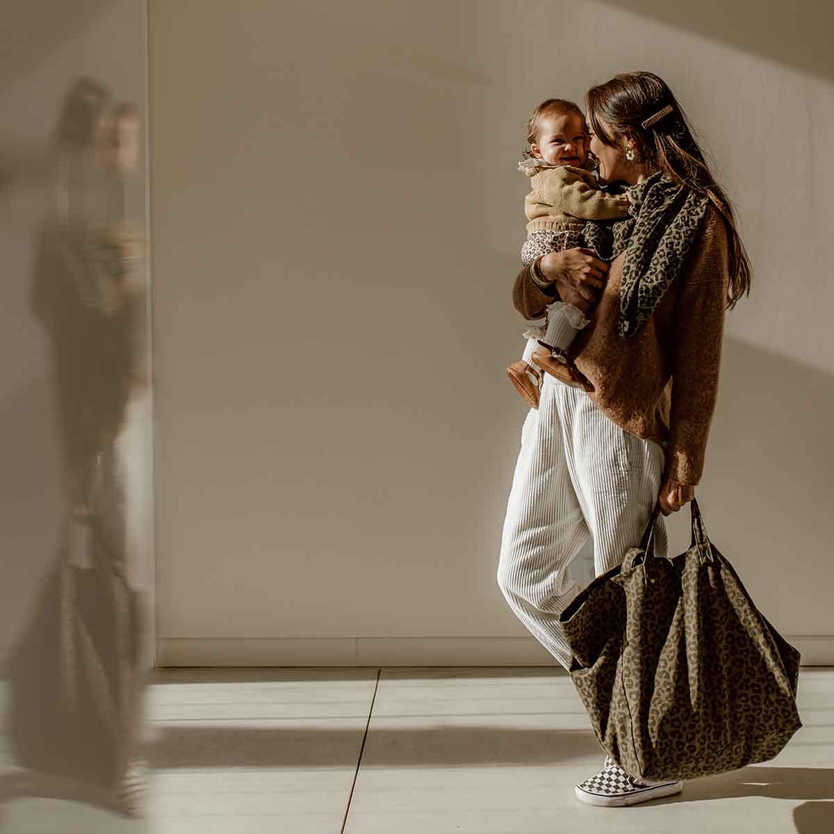 The perfect tote bag! LEOPARD Washed effect Composition: 100% cotton Dimensions: 50*34*62cm Machine wash at 30° Made in Portugal certified OEKO TEX handbags