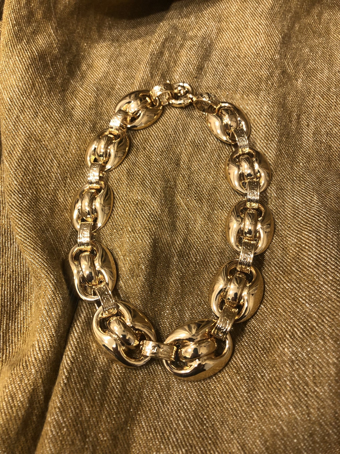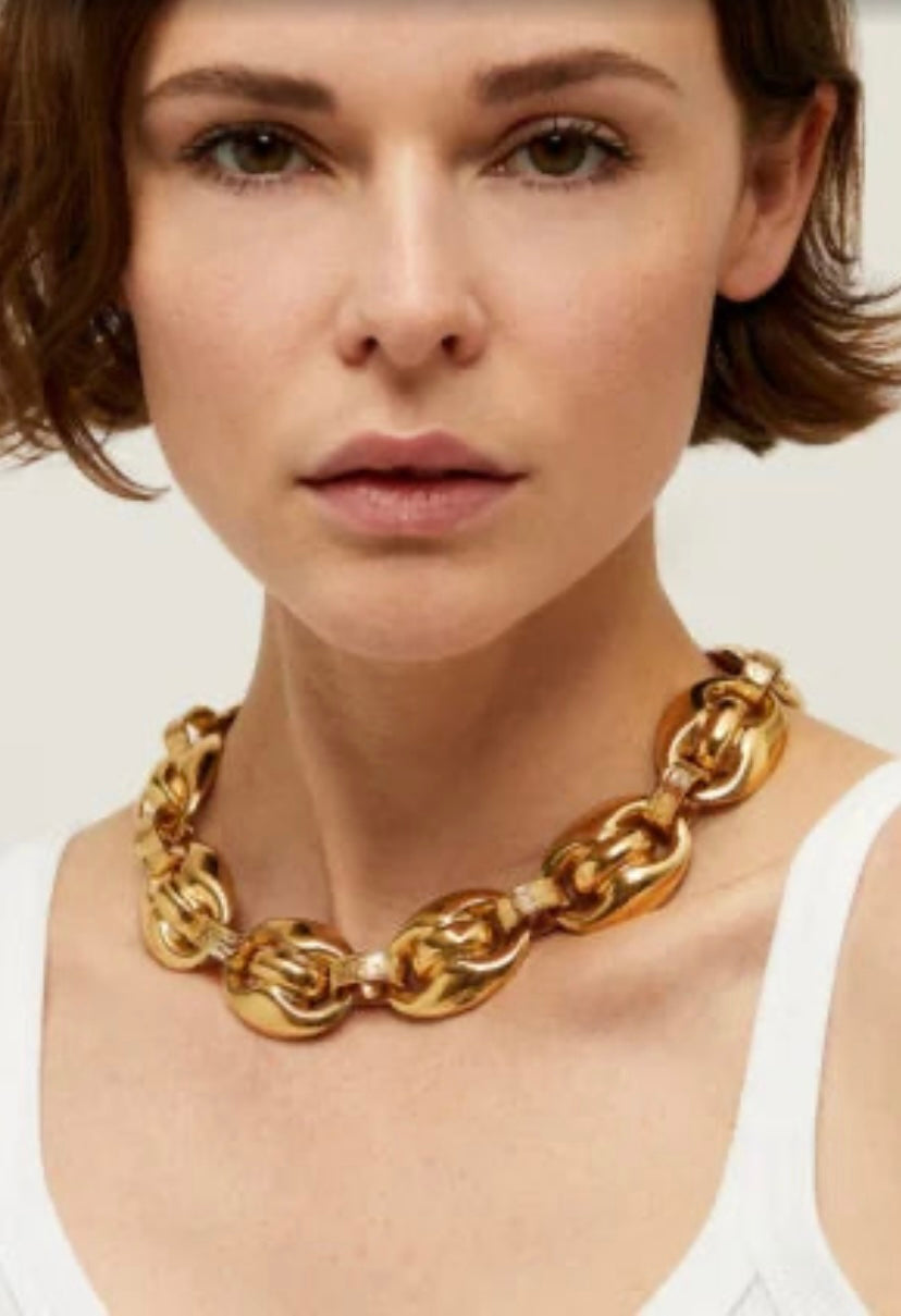 Gas Bijoux Gold plated Cophea necklace is inspired by marine mesh and features large, curved links that are hand-polished and linked by delicately engraved rings. A couture piece that combines lightness and a sense of style.