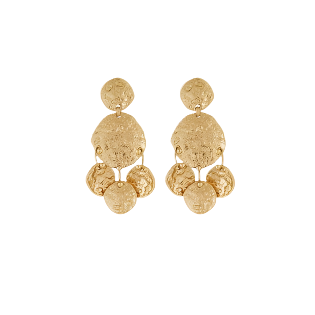 Gold plated earrings inspired by the surface of the moon, composed of fine irregular rounds delicately hammered together.