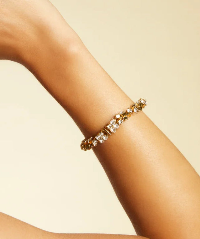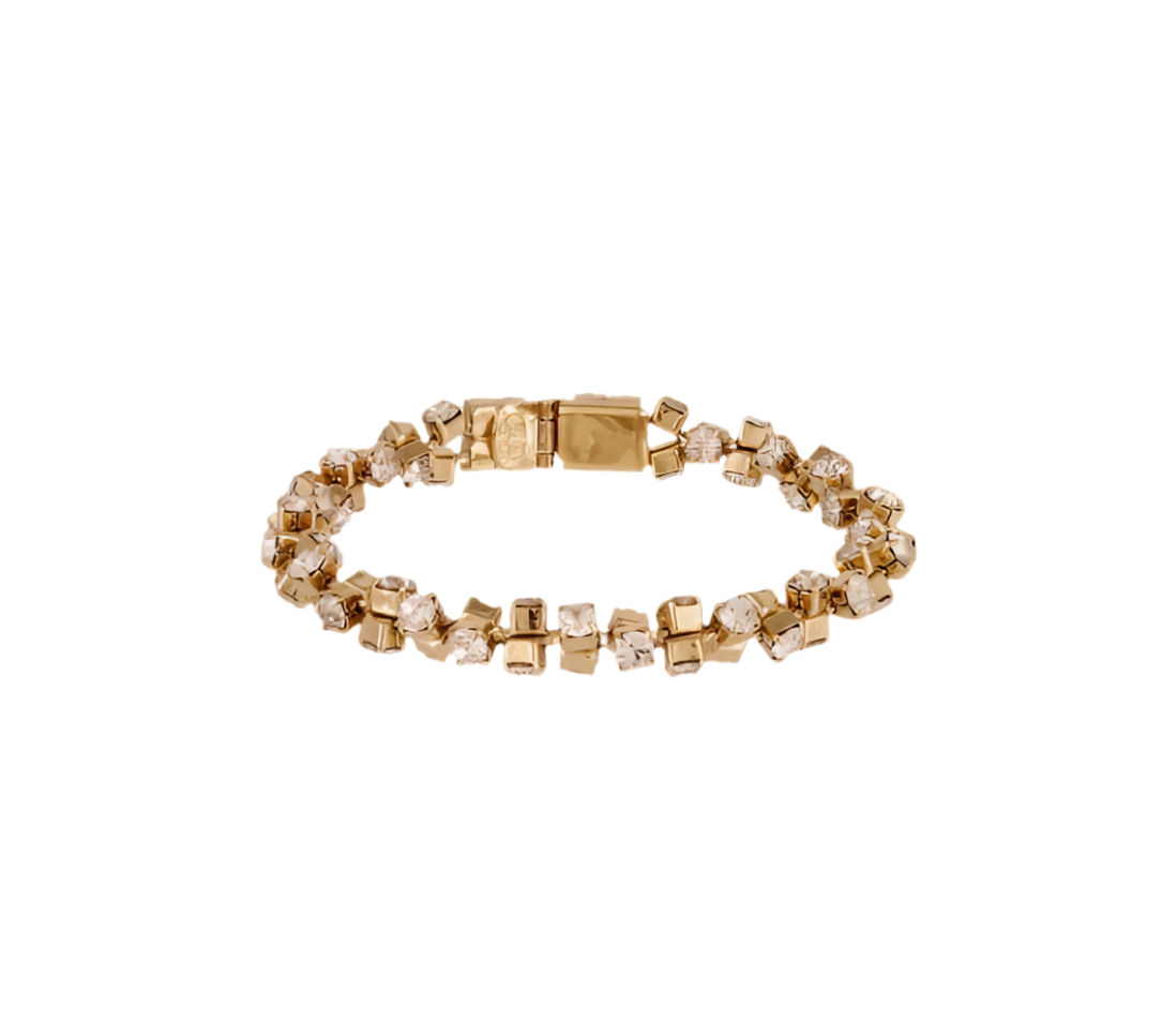 Gold-plated Trevise bracelet featuring a row of elegantly assembled rhinestones with claws that curl to create a unique effect of movement and texture.