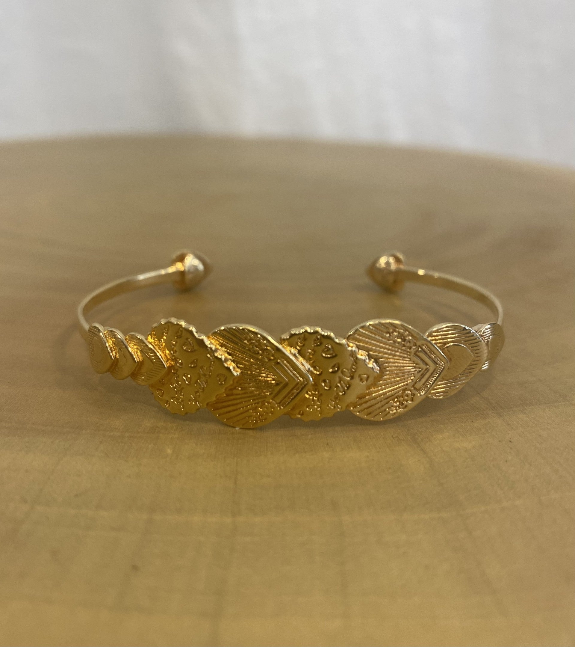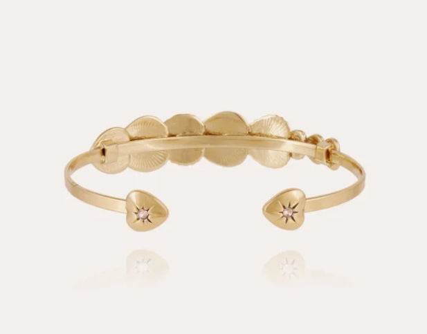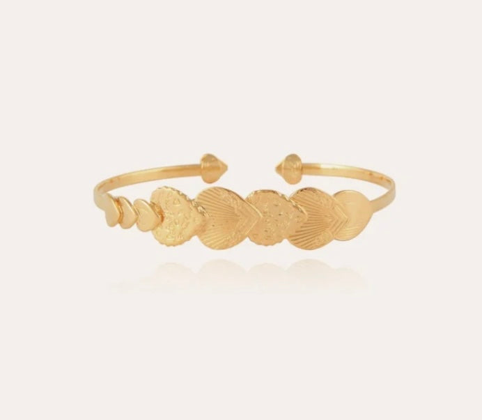 A symbol of elegance and poetry, this gold-plated Insolite Love bangle reveals a delicate tangle of intertwined hearts. Its harmonious design plays on volumes and reflections for a subtle sparkle. Adjustable, it fits perfectly on the wrist. A refined piece, crafted with care, combining artisanal expertise and timelessness.