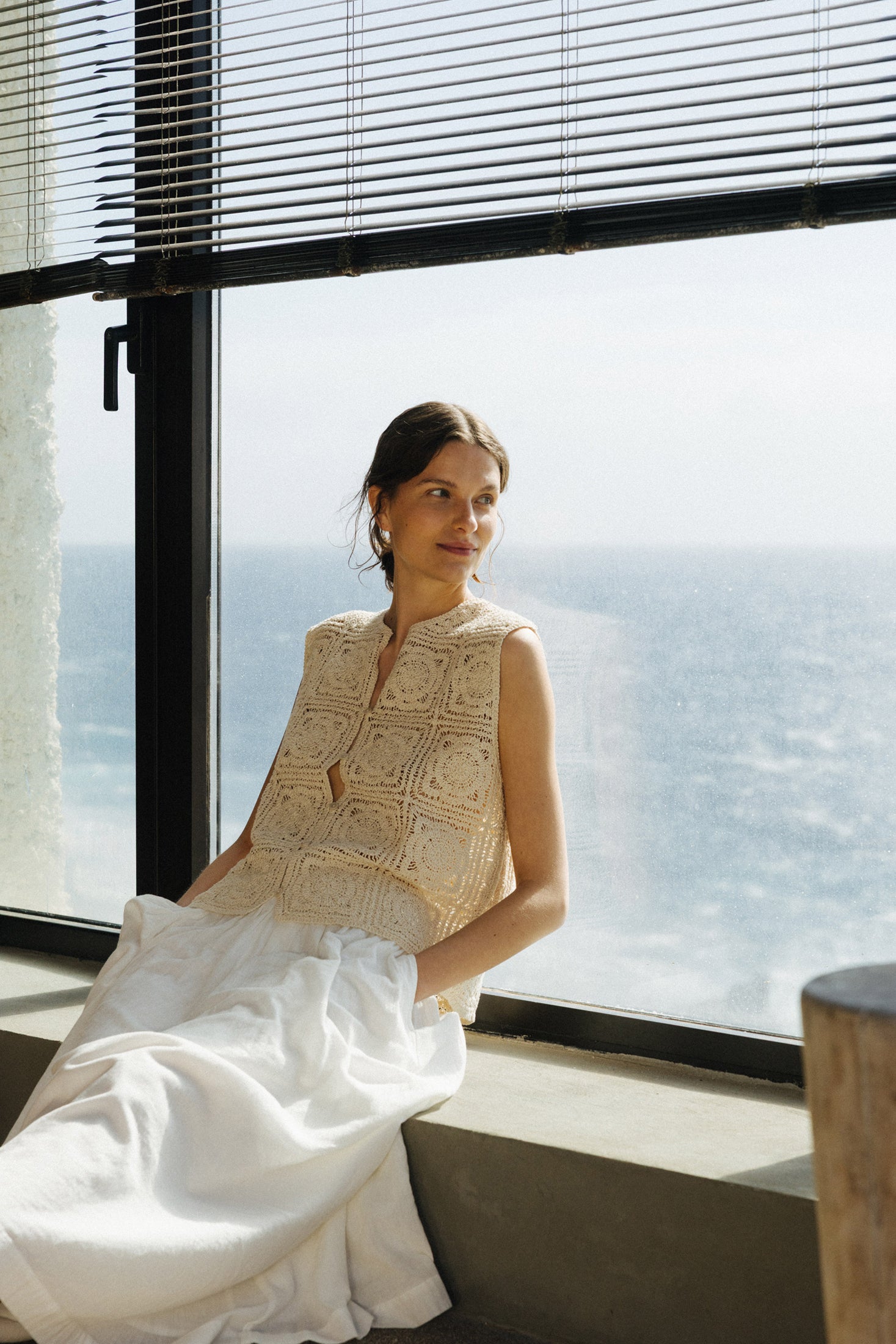 Indi and Cold Crochet Vest Natural
