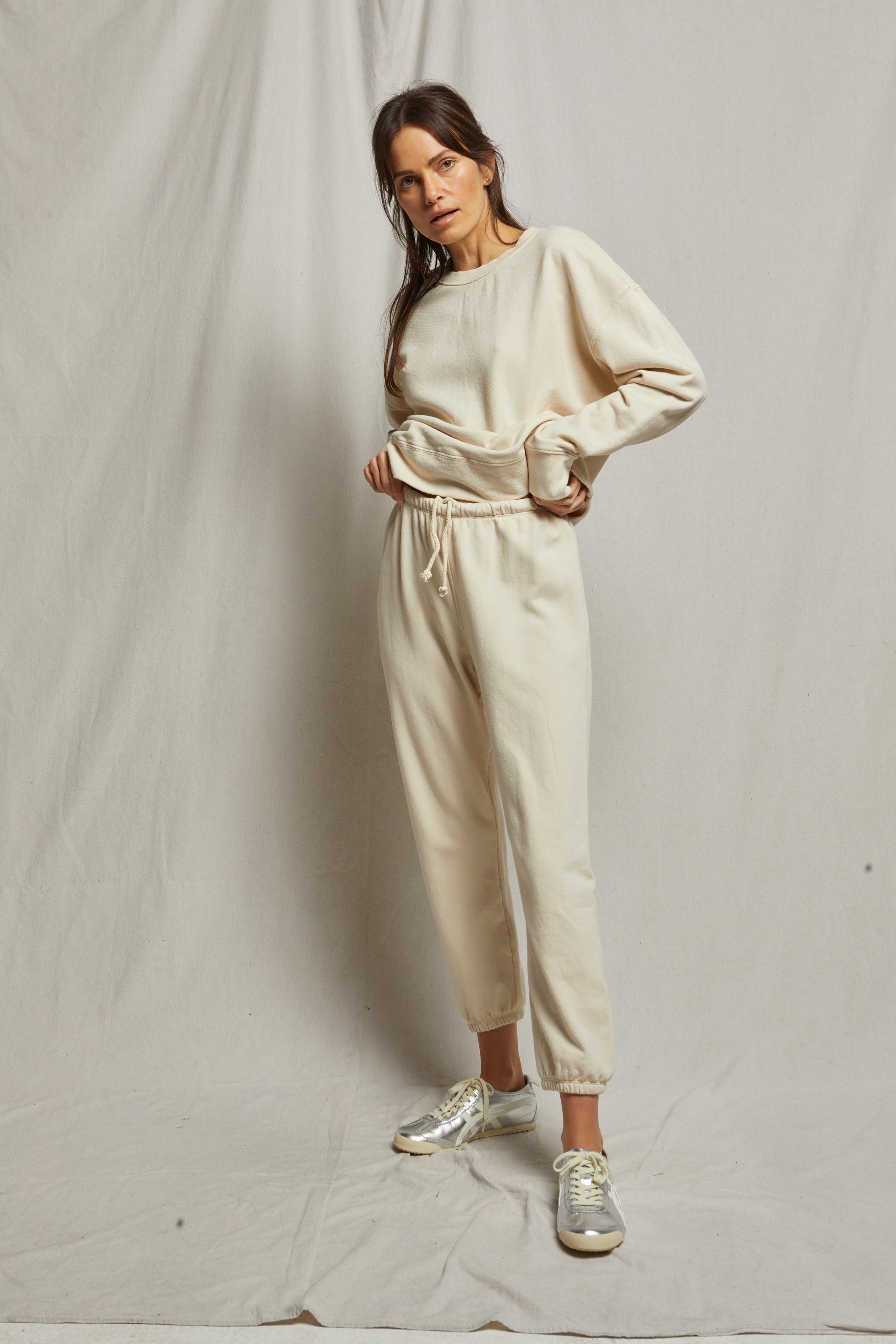 the johnny is made with our signature buttery soft french terry cotton. perfectly paired with our new Cash hoodie. this ankle length jogger fits true-to-size and the drawstring is hidden so you won't have any strings dangling.