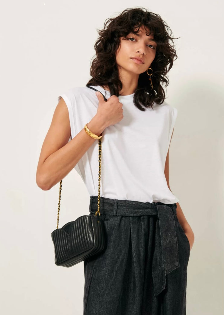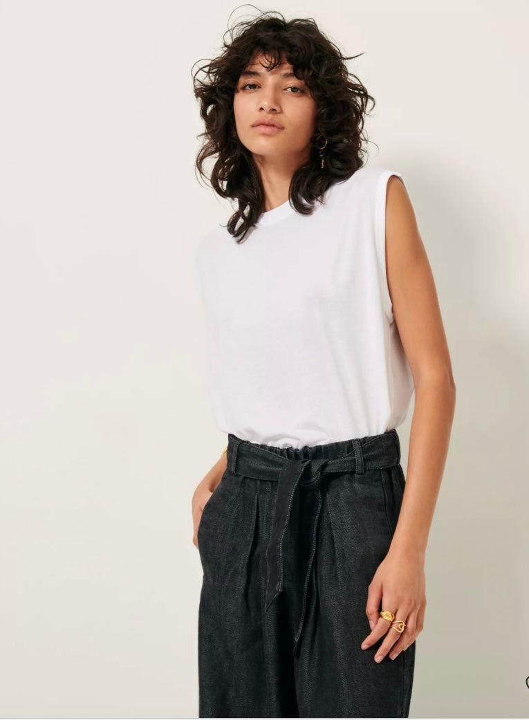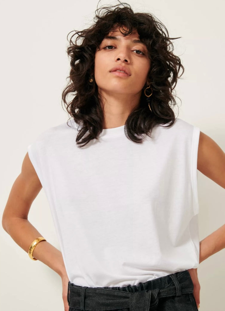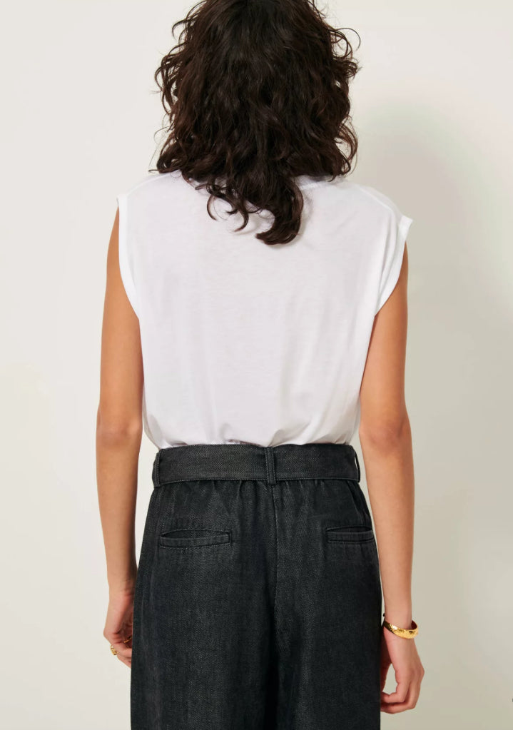 Sleeveless crew neck T-shirt in fluid jersey fabric, made in Portugal.