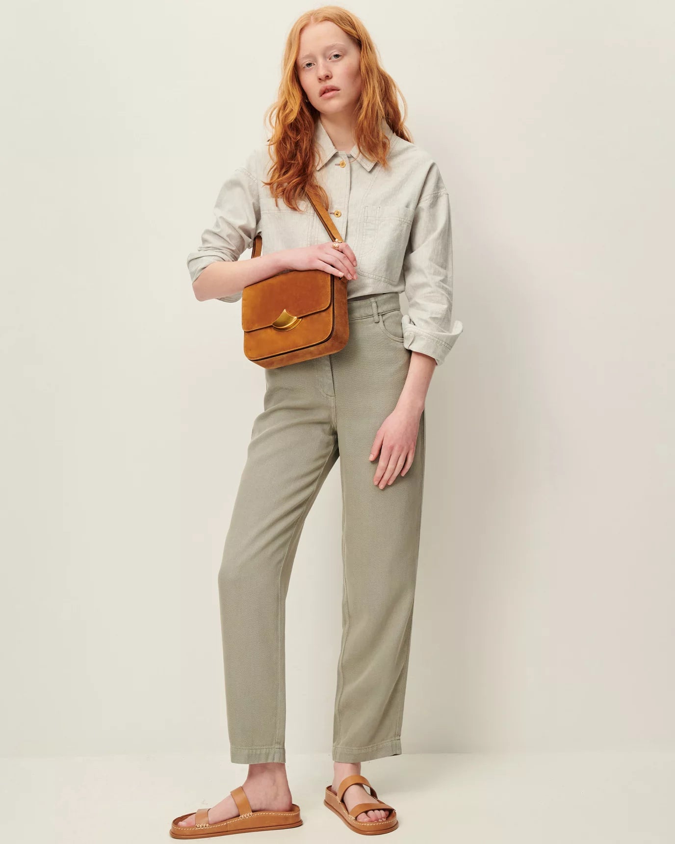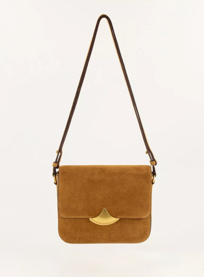 Box bag with two compartments in suede leather with a magnetic clasp, exclusive Sessùn design.