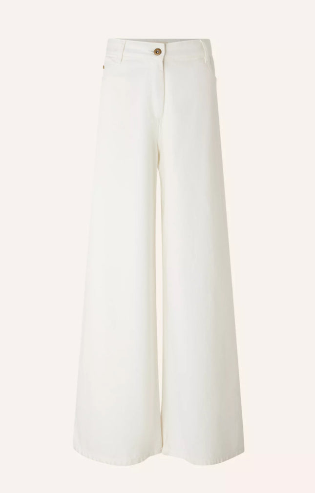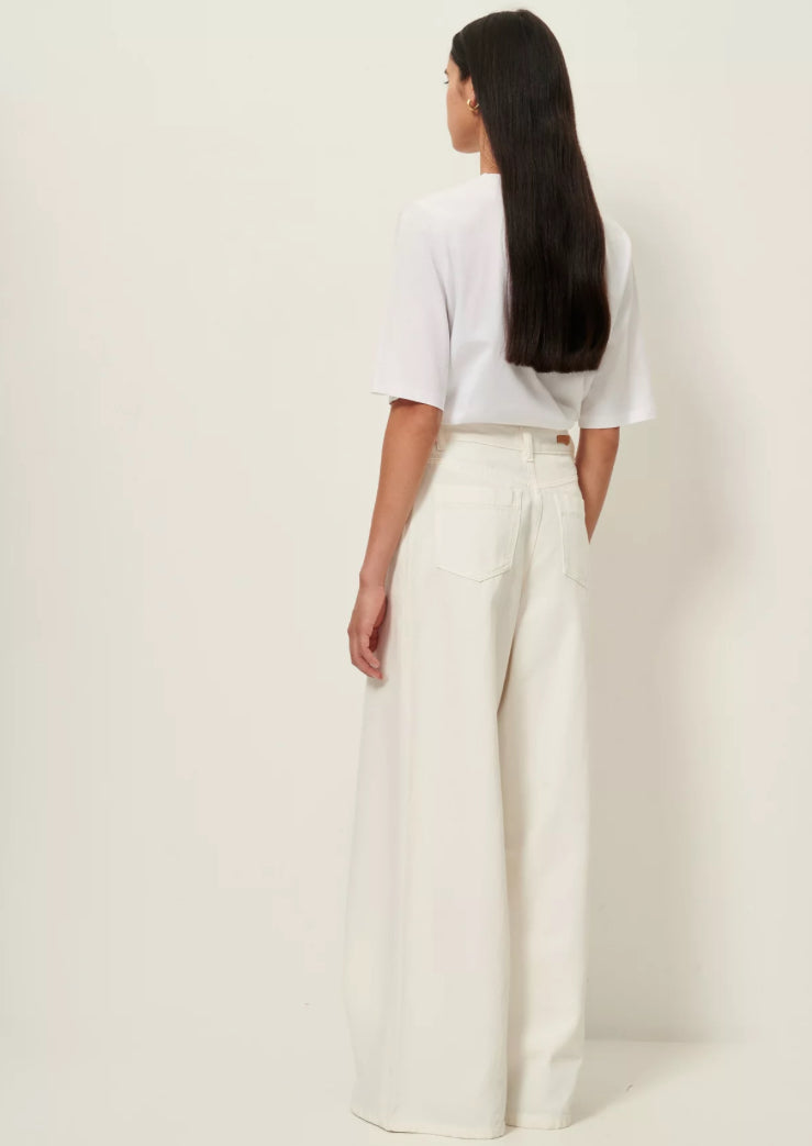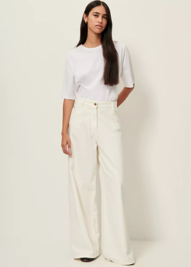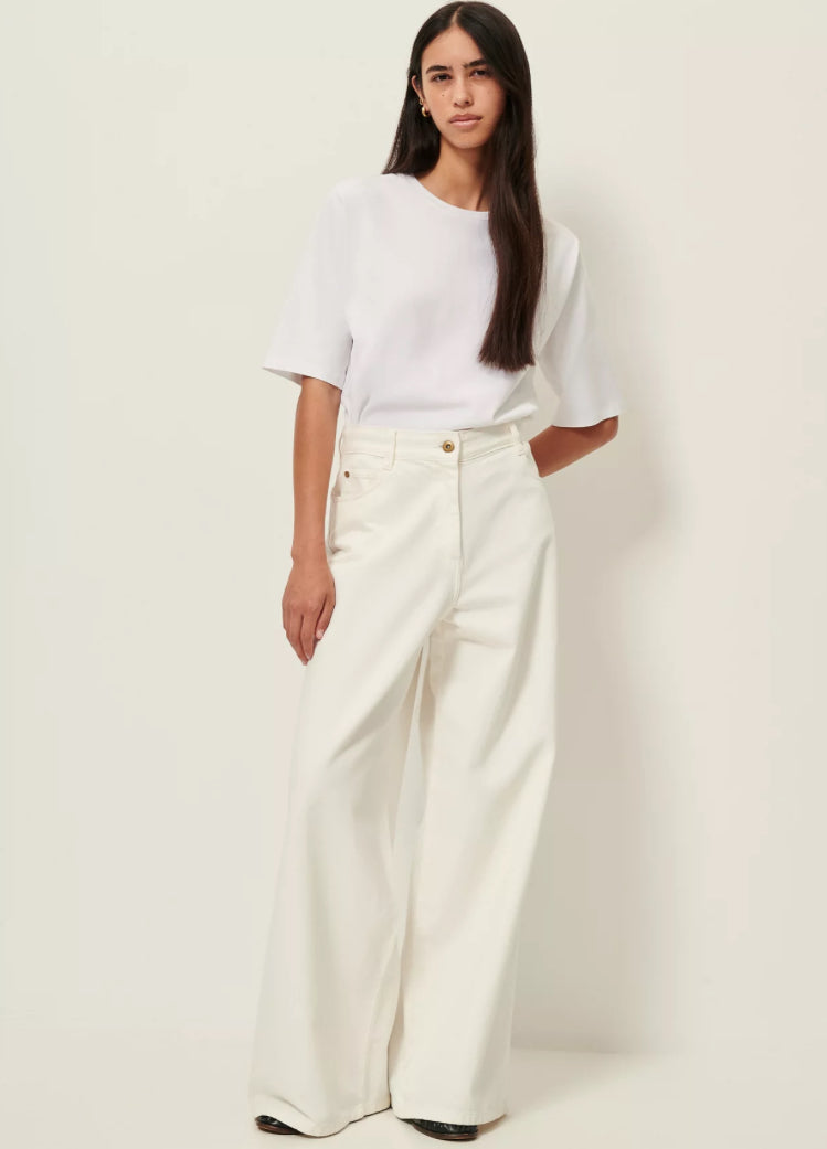 Ultra high-rise wide-leg jeans in fluid garment-dyed denim gabardine, woven in Spain.