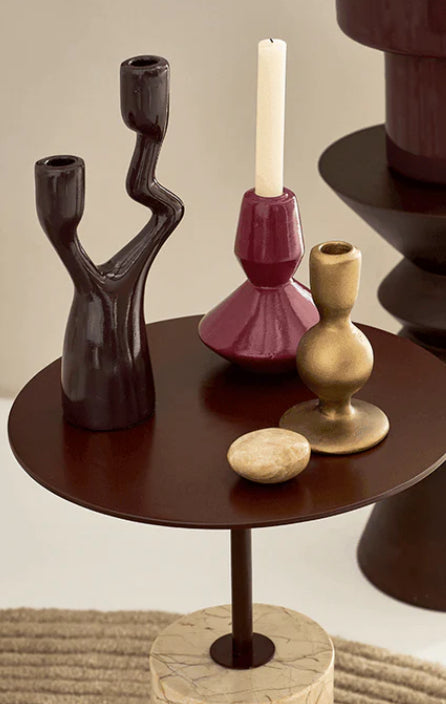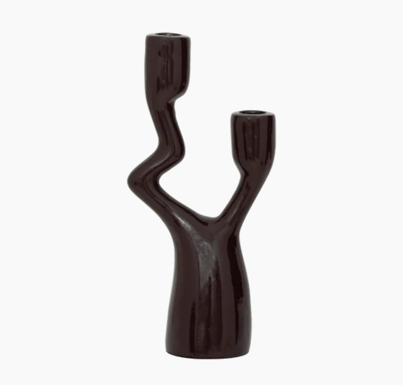 This asymmetrical candle holder is made from ecomix, a mixture of recycled paper pulp, natural gum and chalk powder, turned into a beloved holder of light for your home. Handmade and given a high gloss finish in beautiful fudge, this ecomix candle holder with two arms and an incredibly organic shape adds warmth and nature to every interior. Care instructions: Clean with a dry cloth.